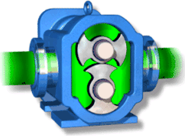 雙螺桿泵與齒輪泵十分相似,一個(gè)螺桿轉(zhuǎn)動,帶動另一個(gè)螺桿,液體被攔截在嚙合室內(nèi),沿桿軸方向推進(jìn),然后被擠向中央排出。