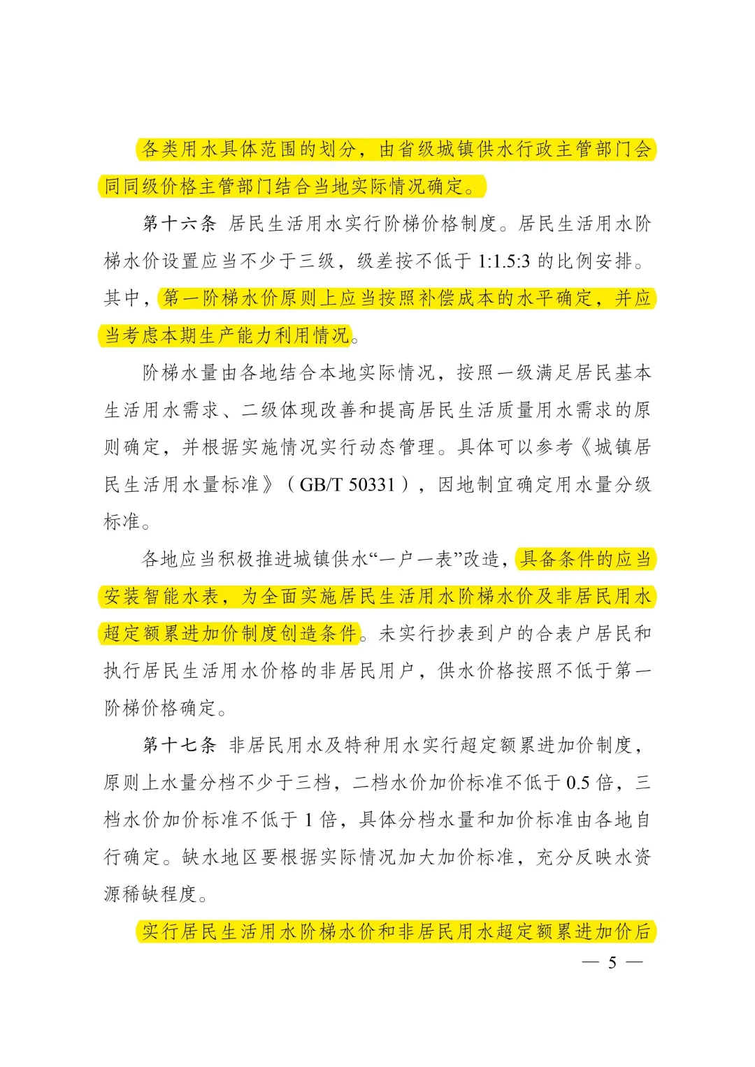 答:兩個《辦法》的修訂出臺,有助于進一步規范城鎮供水價格管理,保障供水、用水雙方合法權益,促進城鎮供水事業健康發展,節約和保護水資源。考慮到我國地域廣闊,不同地區水資源稟賦條件、經濟發展水平、社會承受能力等情況差異較大,兩個《辦法》對完善城鎮供水價格機制作出了框架性要求,一些具體參數設定和指標考核等需要各地區結合當地實際進一步細化明確,各地應當制定出臺具體辦法或實施細則。
