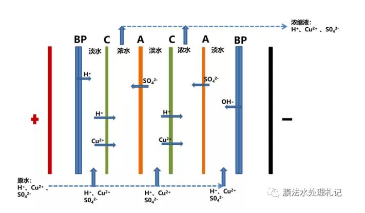 含有高濃度金屬離子的廢水系統(tǒng),對電滲析而言,往往是非常頭疼的事情。一方面部分金屬離子在系統(tǒng)中容易形成膠體,或者運行過程中濃水和極水容易結(jié)垢,造成設(shè)備污堵;另一方面多價金屬離子容易進入極水室,從而在陰極室被還原成金屬單質(zhì),從而降低電極板處理效率,且不易恢復(fù)。