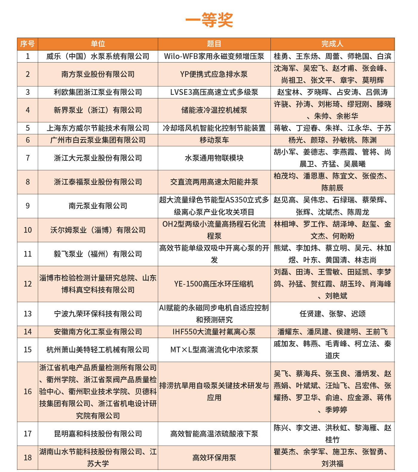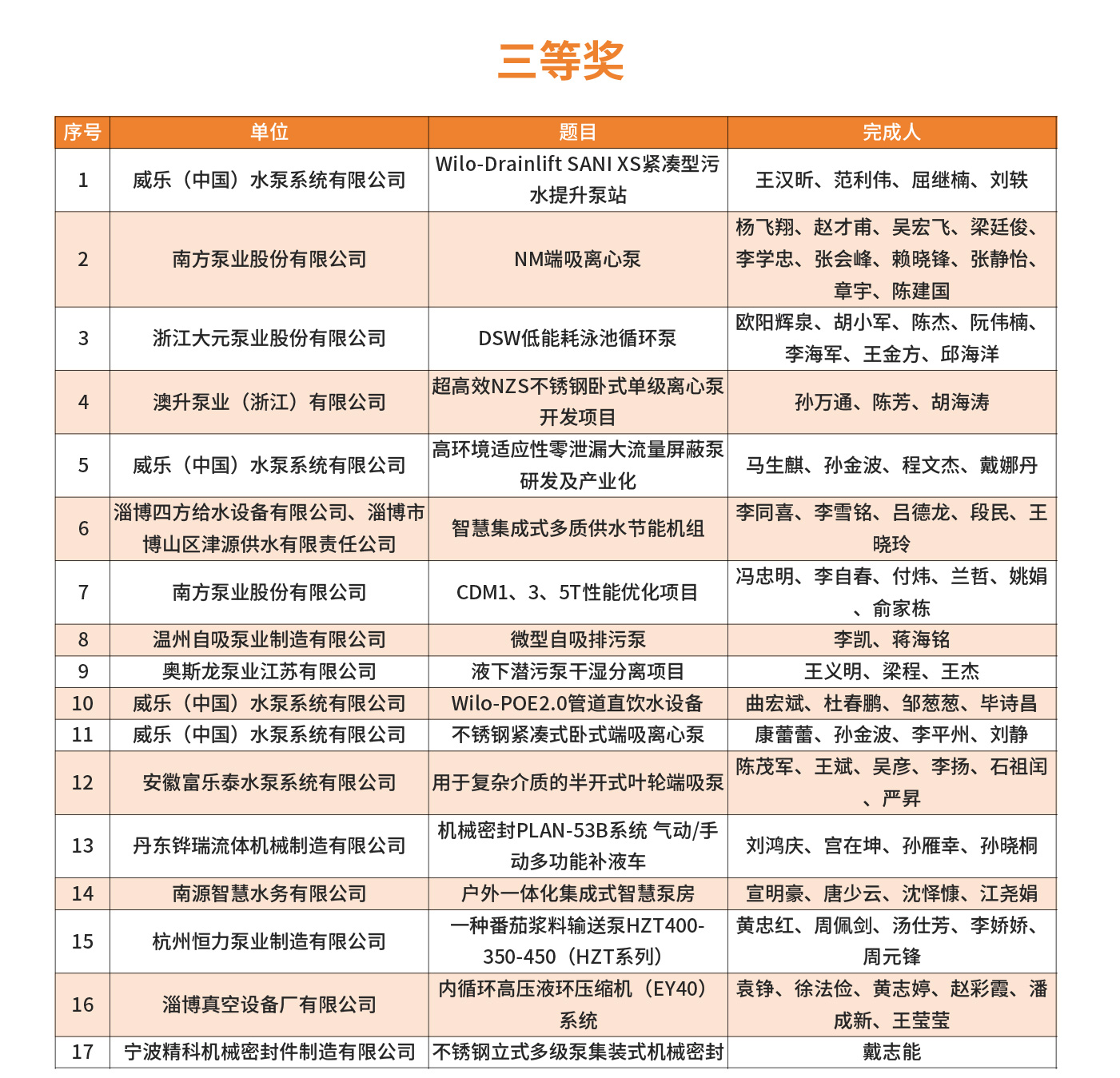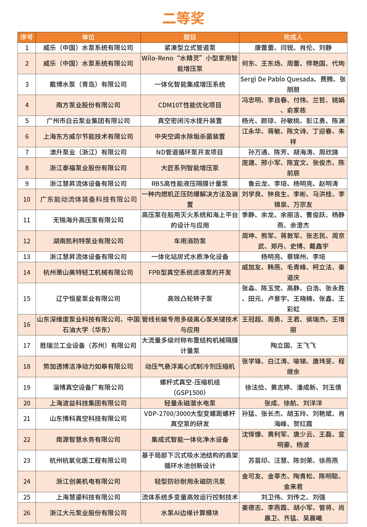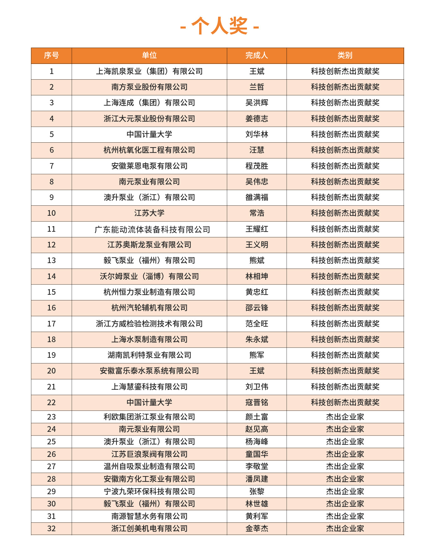 2025年第四屆FLOWTECH CHINA全國流體裝備技術創(chuàng)新獎經(jīng)過10位嘉賓的專業(yè)評審,共評選出了威樂、南方、利歐、新界、白云、沃爾姆、澳升等在內(nèi)的一、二、三等獎,凱泉泵業(yè)王斌、南方泵業(yè)蘭哲、利歐集團顏土富等32位個人獎。
