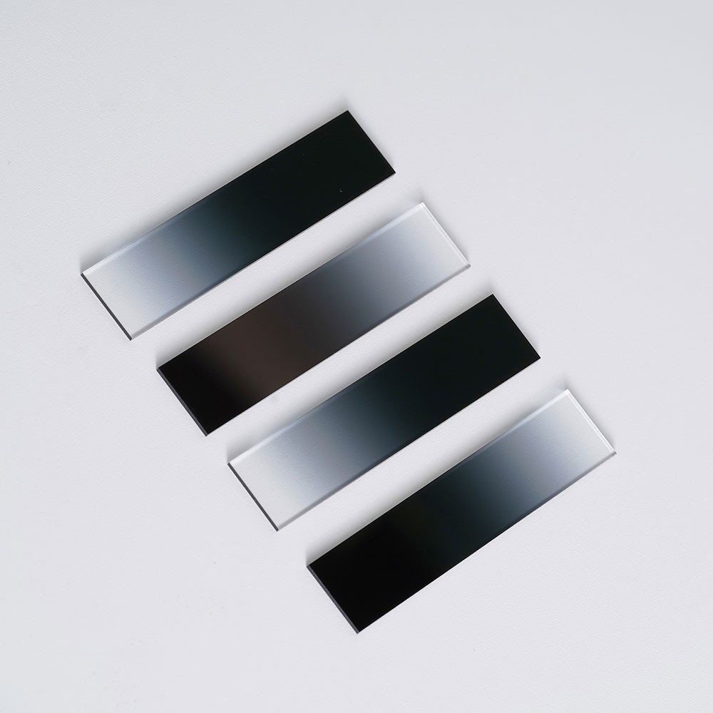 條形漸變中性密度濾光片作為一款具備獨特條形漸變結構的光學元件,作為中性密度濾光片家族的創新成員,它提供了光密度沿單一方向(如水平、垂直)線性變化,其核心特色在于特定條形方向上透光率呈現線性漸變分布。從濾光片的一端到另一端,透光率按照預設的線性規律逐漸變化,這種設計為光學系統提供了更靈活、精準的光強調控方案。