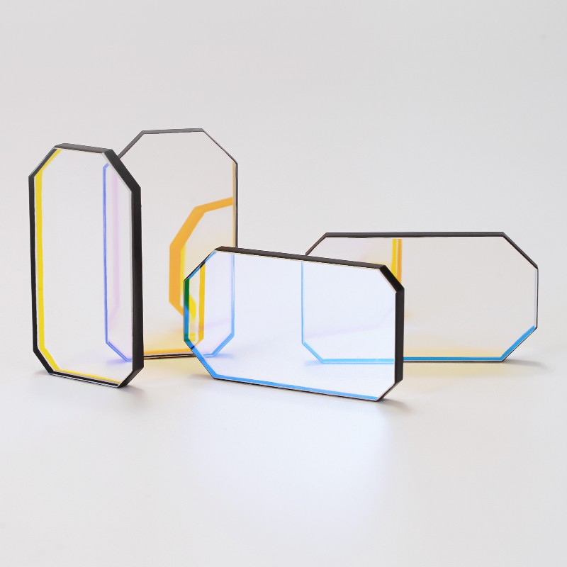 反射鏡(mirror)它是一種利用反射定律工作的光學元件。反射鏡按形狀可分為平面反射鏡、球面反射鏡和非球面反射鏡三種;按反射程度,可分成全反反射鏡和半透半反反射鏡(又名分束鏡)。在光學玻璃的背面,通過真空鍍膜鍍一層薄膜,使入射光反射的光學元件。采用高反射比的反射鏡可使激光器的輸出功率成倍提高;且是第一反射面反射,反射圖像不失真,無重影,為前表面反射作用。如采用普通反射鏡為第二反射面,不僅反射率低,對波長無選擇性,而且易產生重影。而采用鍍膜膜面反射鏡,得到的圖象不僅亮度高,而且精確無偏差,畫質更清晰,色彩更逼真。前表面反射鏡廣泛為光學高保真掃描反射成像之作用。