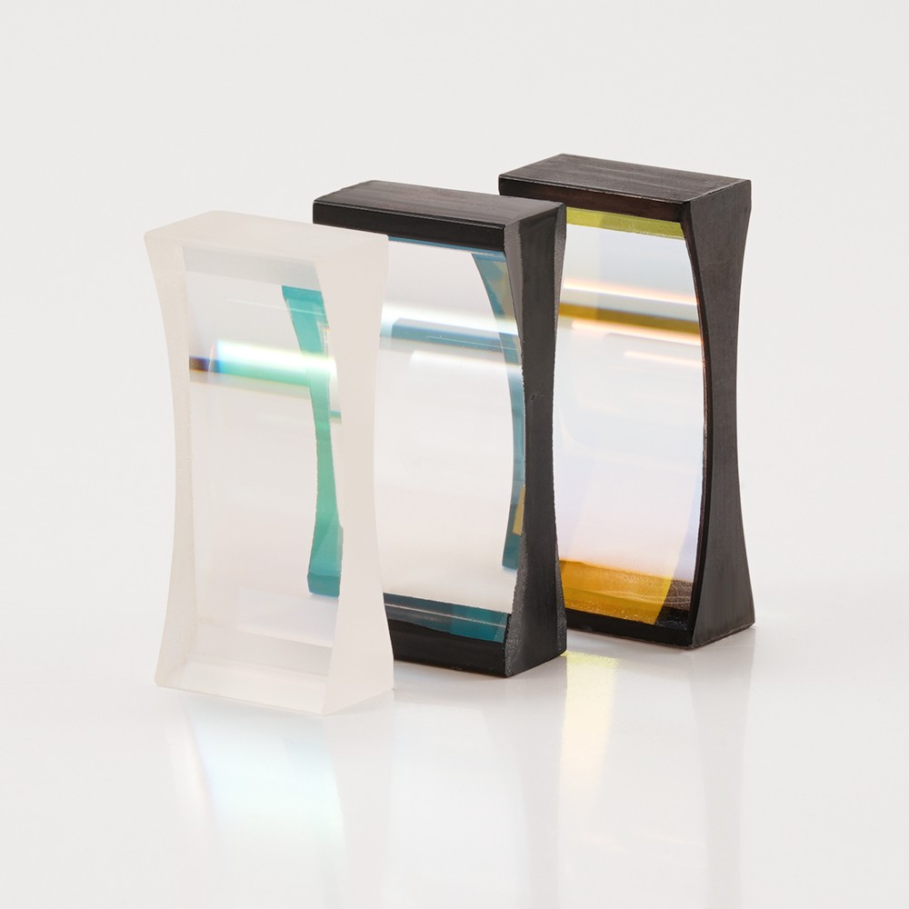 柱面鏡分為平凸柱面透鏡、平凹柱面透鏡、雙凸柱面透鏡、雙凹柱面透鏡、彎月柱面鏡、柱交柱面鏡和異形類柱面透鏡。具有將點光源變為線形光源的作用。雙凹柱面鏡主要應用于改變成像尺寸大小的設計要求。